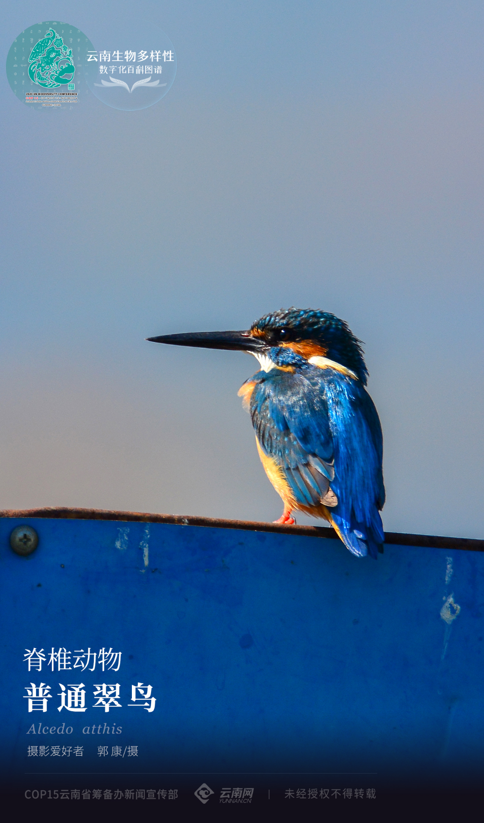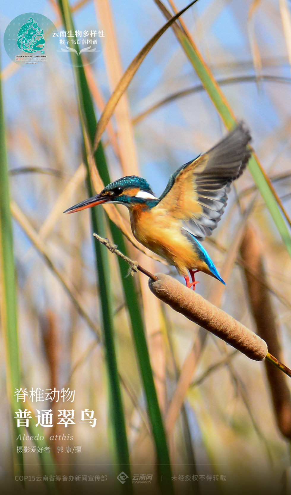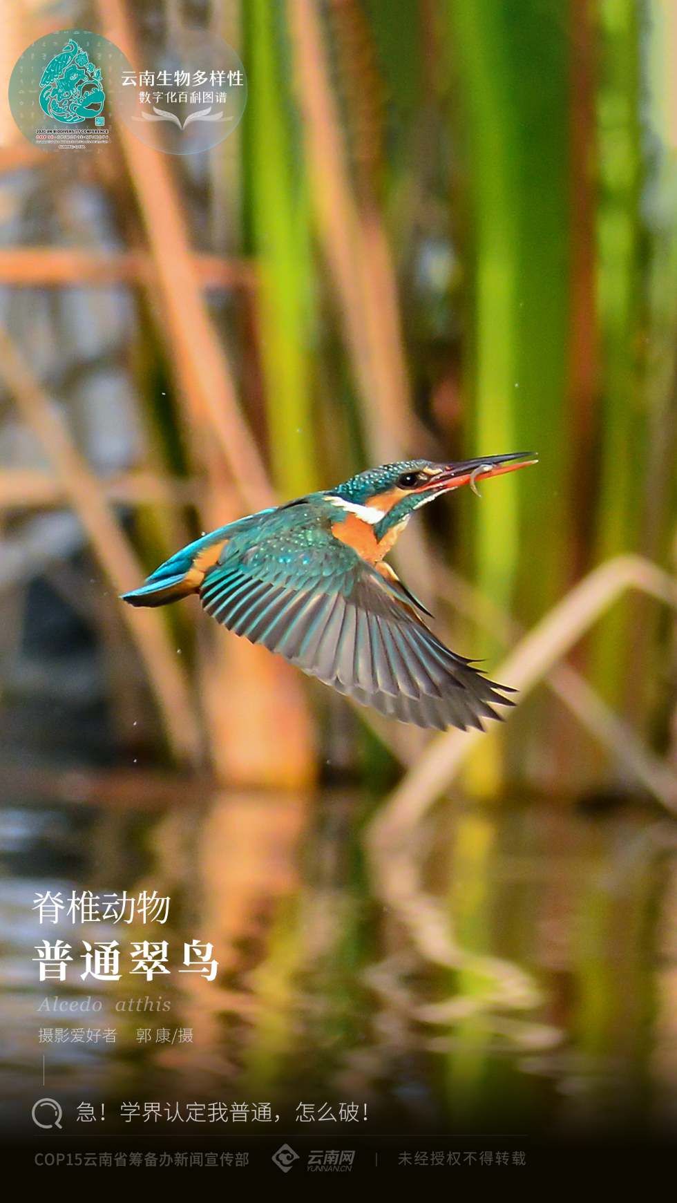 普通翠鸟,隶属脊椎动物、鸟纲、佛法僧目、翠鸟科、翠鸟属,又名鱼狗、钓鱼郎。该物种广泛分布于欧亚大陆及非洲北部,也是我国多地常见留鸟。照片摄于保山。