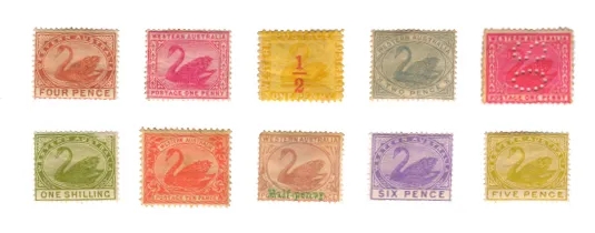 西澳大利亚早期邮票,首张发行于1861年。秘境百马供图