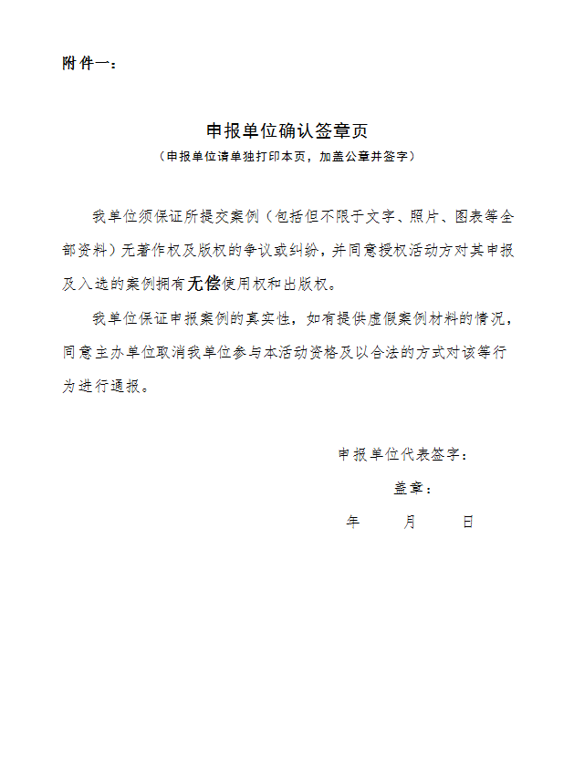 附件一:申报单位确认签章页