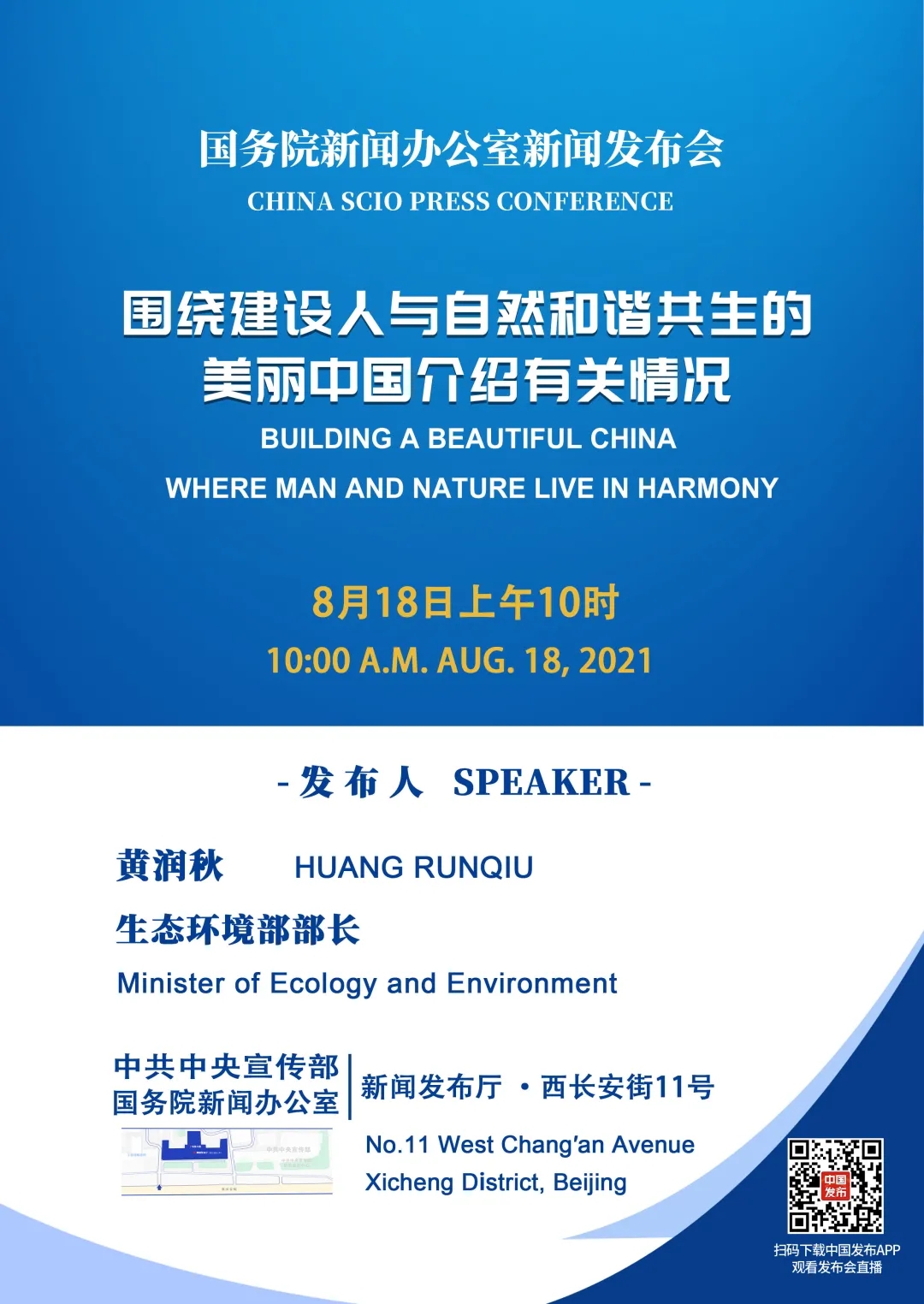 生态环境部部长黄润秋将出席国新办新闻发布会