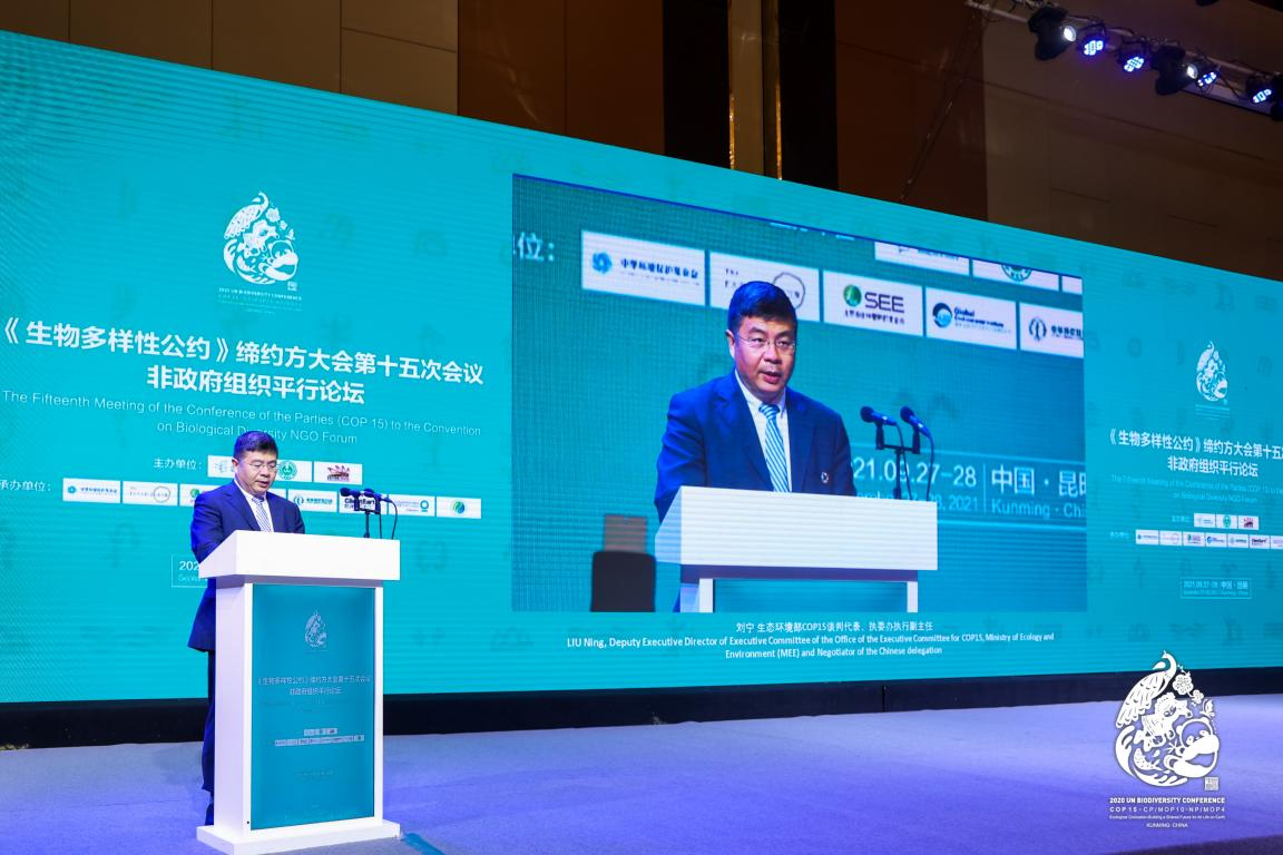 2021年9月27日~28日,联合国《生物多样性公约》缔约方大会第十五次会议(CBD COP15)非政府组织平行论坛在云南昆明召开。生态环境部部长黄润秋、生物多样性公约秘书处执书伊丽莎白·穆雷玛、中共中央对外联络部陈洲副部长分别致开幕词,来自五大洲30余个国家的非政府组织及利益相关方代表400余人与会。