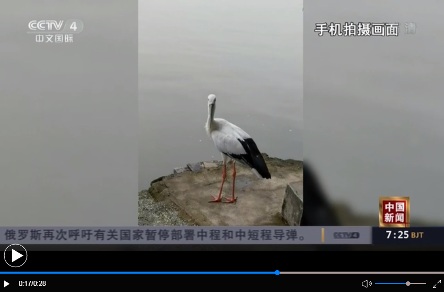 福建漳州:珍稀鸟类东方白鹳现身九龙江畔