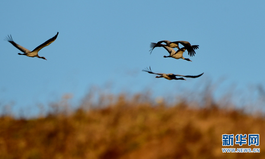不远千里而来的黑颈鹤(11月7日摄)。新华网发(王远剑 摄)