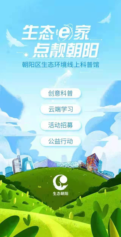 “生态e家,点‘靓’朝阳,朝阳群众们快快行动起来,和我们一起学习、践行生态环保理念,共同描绘天蓝、水清、土净、地绿、低碳,和谐宜居的大美朝阳吧。”11月15日,朝阳区生态环境局经过精心策划与开发的“生态环境线上科普馆”正式上线。