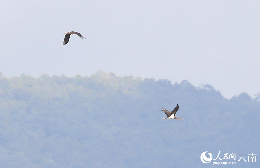 9只“鸟中大熊猫”黑鹳再现云南保山