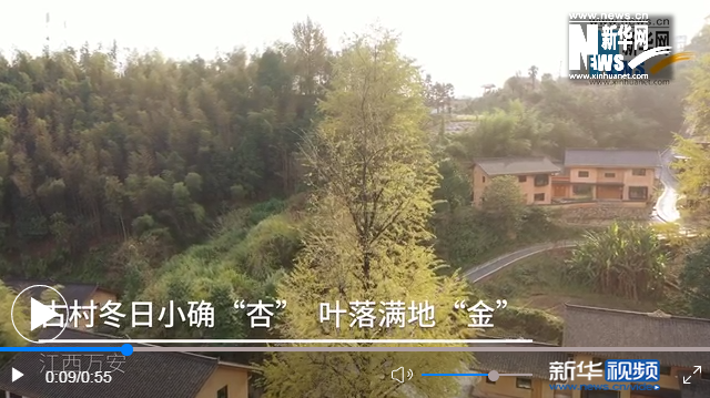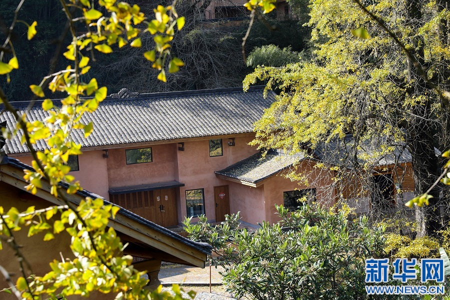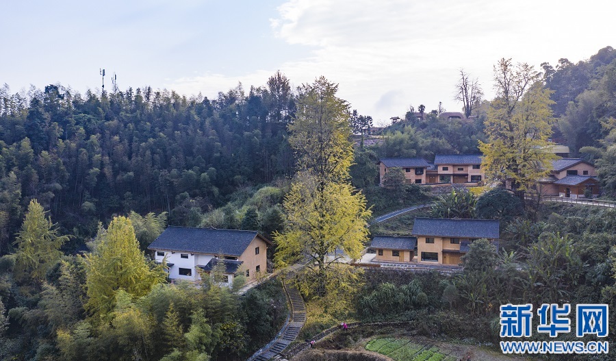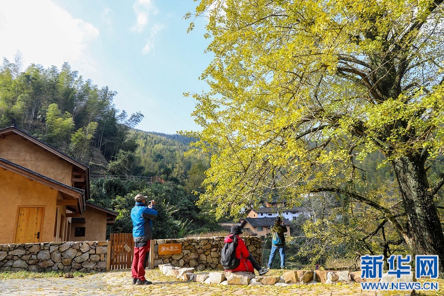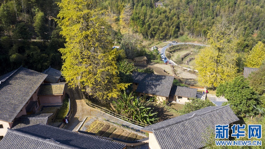 村居掩映在银杏叶之中。 新华网发 邹进 摄
