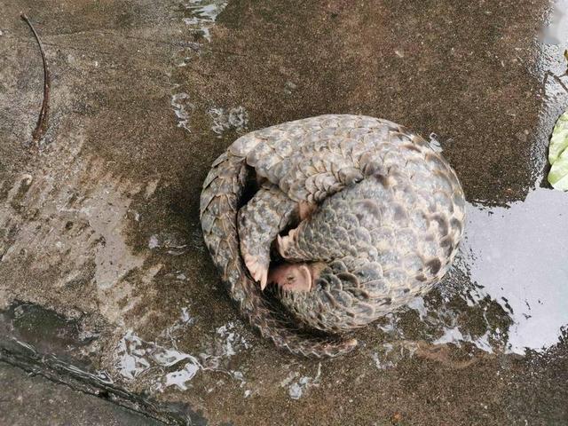 据了解,当天雨过天晴,鹤市镇鹤联村村民陈坤新外出散步时,在村道旁意外发现了一个物体在爬行,待其走近时,该物体已蜷缩成一团,经细看才知道是一只穿山甲。