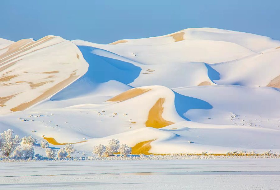罕见塔克拉玛干沙漠雪来了!这20张神仙壁纸,张张绝美 !