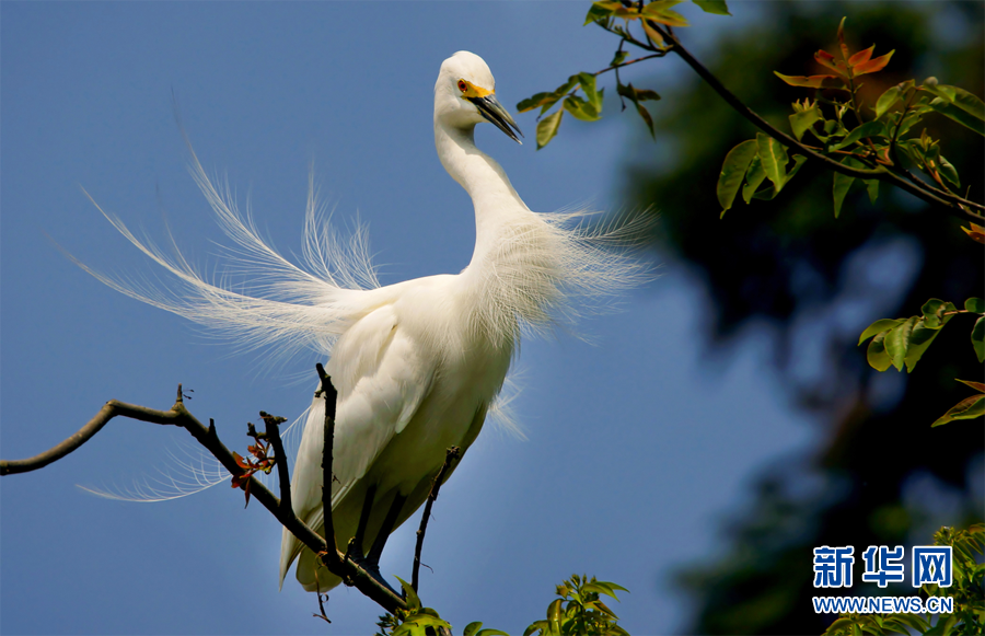 一只白鹭驻立在枝头上。新华网发(阮国志摄)