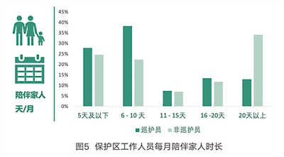 《报告》中还对巡护员的工作状况进行了详细分析,比如与非巡护员相比,巡护员中有更高比例为临聘职工。在所有受访者中,约1/3表示会考虑辞职,主要原因是工资和奖金低(60.4%),工作环境差、基础设施和装备上的欠缺(52.1%),面对盗猎等违法行为没有执法权(49.0%)。