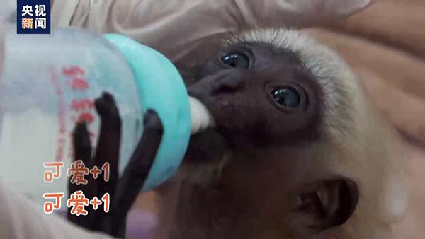 人工繁育的小猿猴为雄性,刚出生的时候体重才450克,因为出生在COP15期间就有了“十五”这个名字,刚满月的时候就被猿妈妈“毛球”给弃养了。德宏州野生动物收容救护中心的工作人员充当起了“奶爸”“奶妈”,精心呵护小猿猴成长。喂奶,换尿不湿,24小时监护……在“奶爸”“奶妈”们的精心照顾下,小“十五”健康成长,出生70多天,体重也增长到了650克。