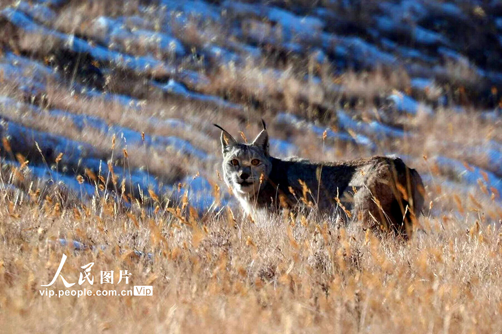 冬日的甘肃祁连山国家级自然保护区内,猞猁、狐狸、白唇鹿、野狼、岩羊等野生动物正在悠闲觅食。