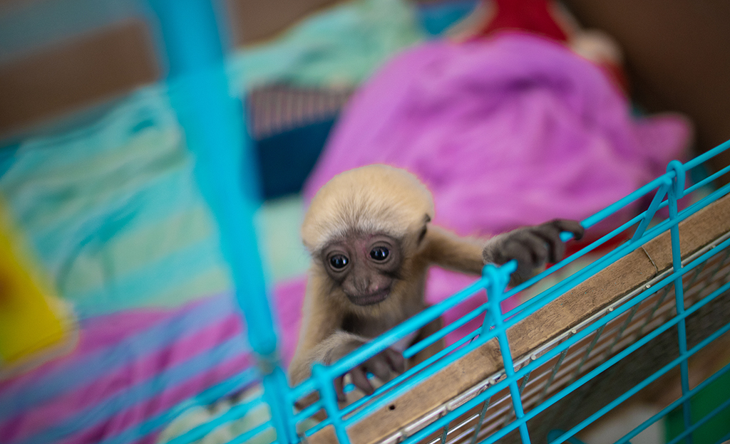 云南省德宏州野生动物收容救护中心通过人工干预,成功繁育出全国首例东白眉长臂猿,为繁育研究白眉长臂猿提供了宝贵的经验,目前小猿猴健康状况良好。
