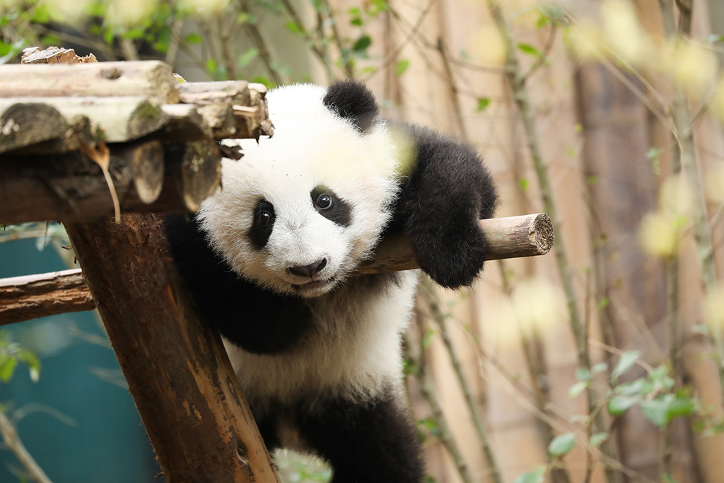 成都:大熊猫萌态可掬惹人喜爱