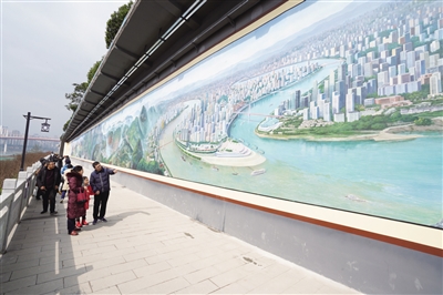 画卷吸引市民前来打卡拍照。画中为重庆两江交汇。 余常海摄