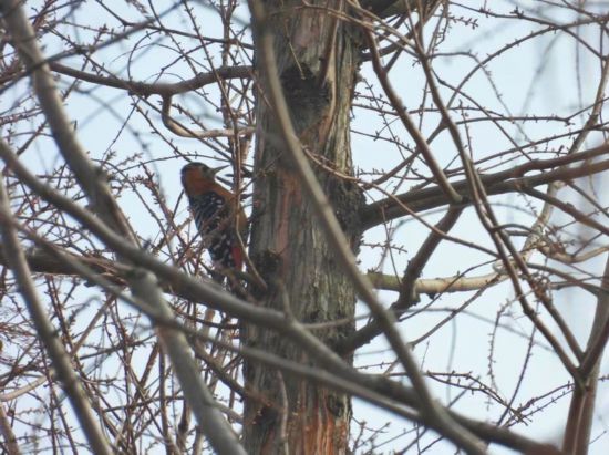 东方网记者 柏可林 2月15日报道:近日,一群观鸟爱好者来到辰山植物园,在华东树木园区域的水杉林发现了中国东部地区较为罕见的鸟类棕腹啄木鸟(Dendrocopos hyperythrus),英文名为rufous-bellied woodpecker。