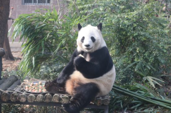 2月15日,元宵节,成都动物园也给动物们“闹元宵”,品尝特别的汤圆。