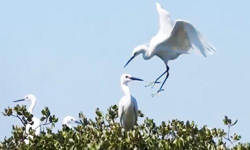 初春三月,在广西北海金海湾红树林生态旅游区,密密匝匝的红树林,群鹜飞天,一派生机盎然的初春景象,百种鸟类、昆虫、贝类、鱼、虾、蟹等生物在此繁衍栖息。通过生态修复,滨海湿地生态环境向好发展,生物多样性不断增加。