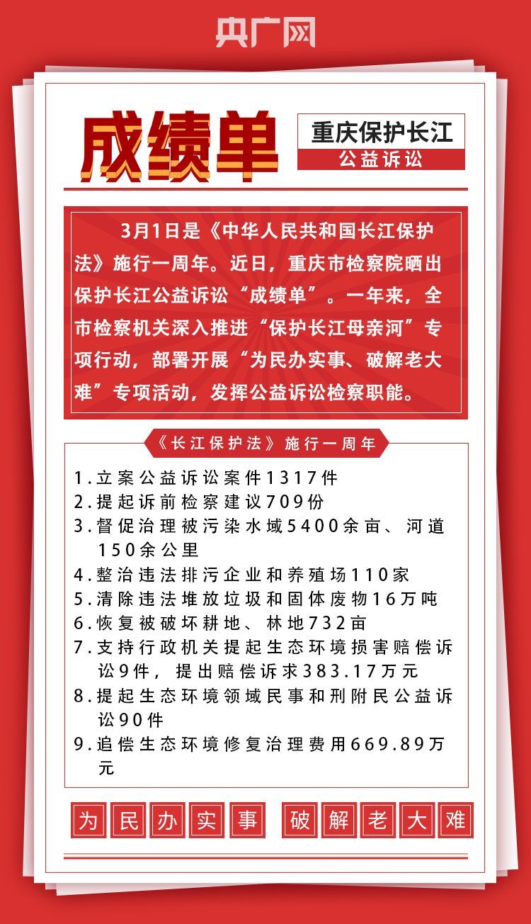 央广网重庆3月9日消息(记者刘淳 实习生毛佳)3月1日是《中华人民共和国长江保护法》施行一周年的日子。近日,重庆市检察院晒出保护长江公益诉讼“成绩单”。