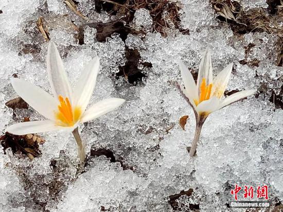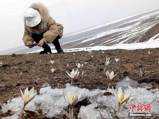 随着气温回暖,新疆伊犁州察布查尔县乌孙山下,积雪虽尚未完全融化,山坡上的野百合开始竞相绽放。一朵朵叶色浅白、花心淡黄的野百合开出“第一朵”迎春花朵,美不胜收,吸引摄影爱好者和游客拍照赏花。野百合又名叫顶冰花,因顶着融化中的冰雪破冰盛开而得名,成为草原上最早盛开的野生花卉。 华岩明 摄