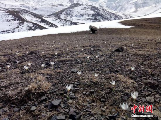 积雪尚未完全融化,山坡上的野百合开始竞相绽放。 华岩明 摄