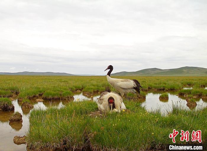 图为黄河源头玛多境内湿地的黑鹤。玛多县委宣传部 供图