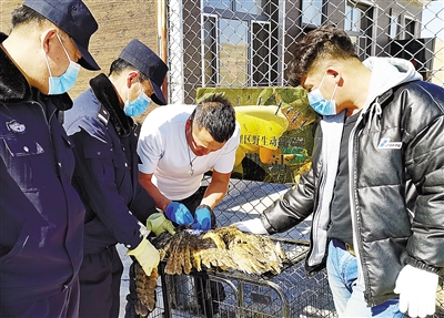 4月7日,工作人员正在救助受伤的候鸟。春季候鸟迁徙季节,锡林郭勒盟积极组织开展保护候鸟专项行动,为候鸟安全迁徙织密保护网。行动中,该盟各地环食药侦部门出动警力544人次,巡查候鸟迁徙通道、觅食地、停歇地等重点区域175处,并救助若干只国家保护动物。巴依斯古楞 摄