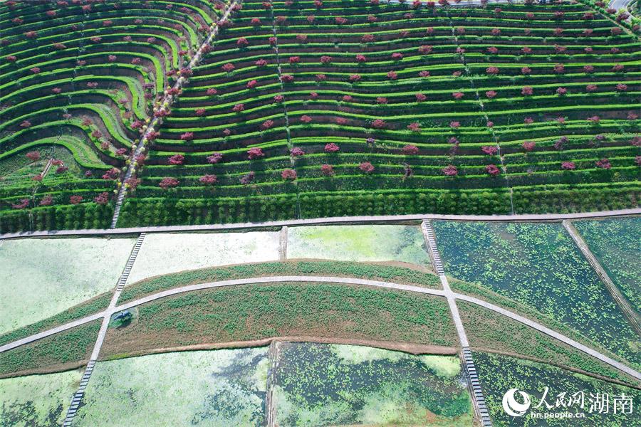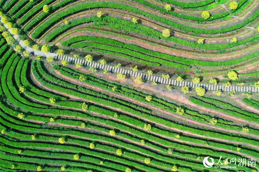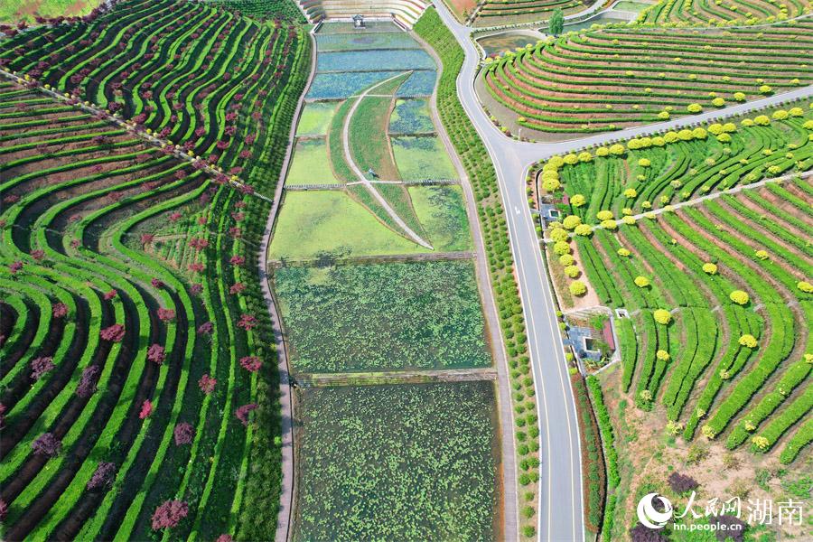 谷雨时节,在湖南省益阳市安化县茶乡花海景区,近千亩茶叶正迎来“谷雨茶”的采摘期,附近乡镇的百余名村民在家门口工作。