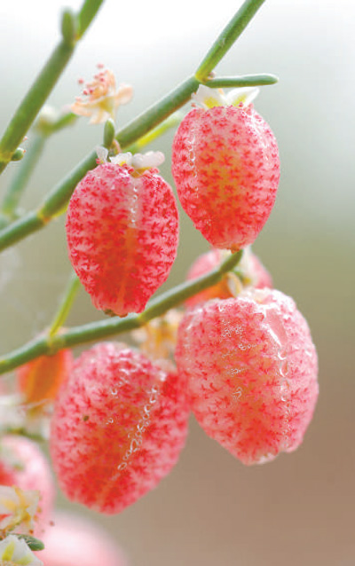目前,植物园已建成荒漠经济果木专类园、荒漠野生观赏植物专类园、柽柳植物专类园等12个特色植物专类园(区)。“可以说,吐鲁番沙漠植物园是我国迁地保护荒漠植物资源最多的植物园,除了固沙植物外还有药用植物。研究出人工培育技术,就不用挖野生的,这样也可以减少因挖掘草药带来的荒漠化。”王喜勇说。