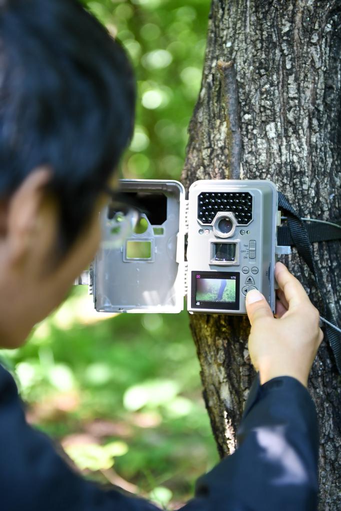 冯利民在东北虎豹国家公园内的森林里查看智能红外相机(2020年7月21日摄)。新华社记者颜麟蕴摄