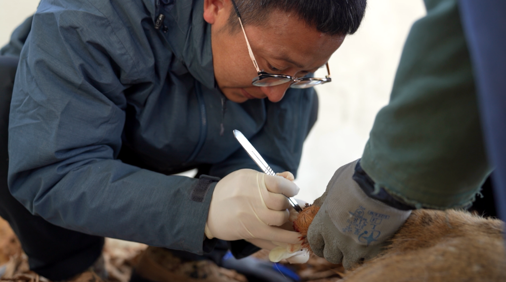 赵岩在救助受伤的野生动物(1月12日摄)。新华社记者司晓帅摄