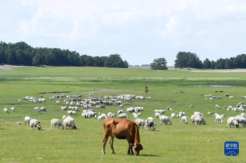 6月26日在新巴尔虎左旗古日班赛罕夏营地拍摄的牧群。 新华社记者 王泽聪 摄