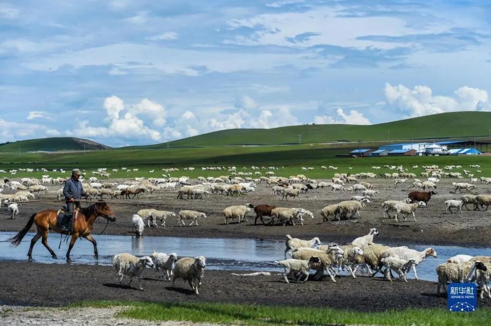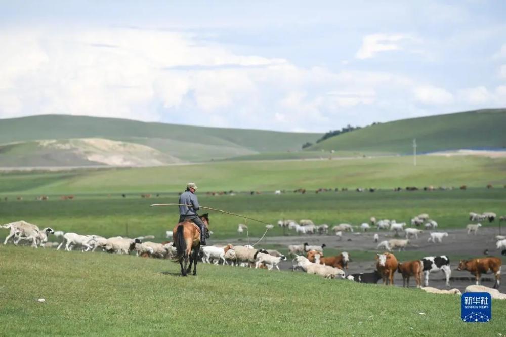 6月26日,牧民在新巴尔虎左旗道乐都夏营地放牧。 新华社记者 王泽聪 摄