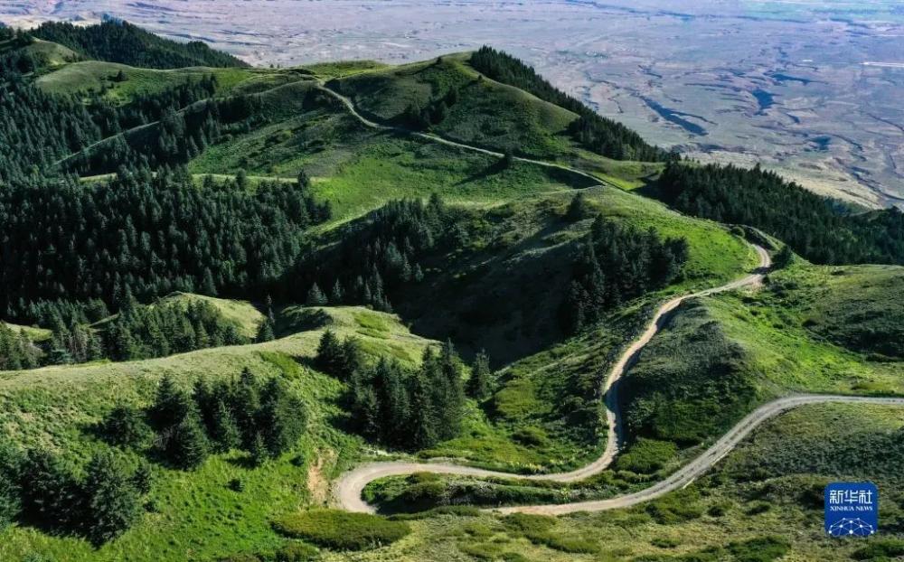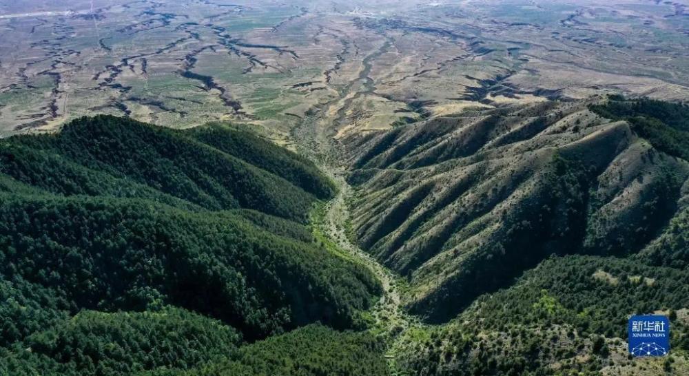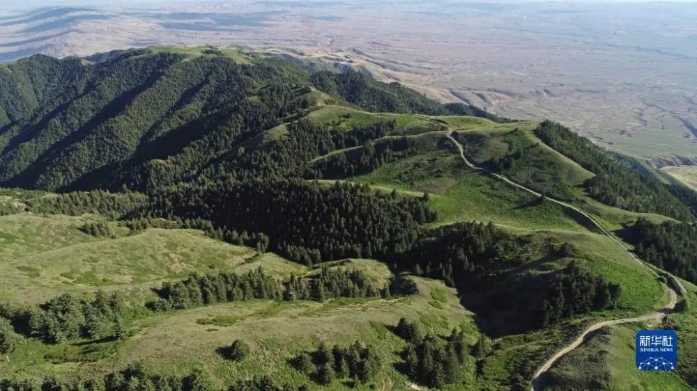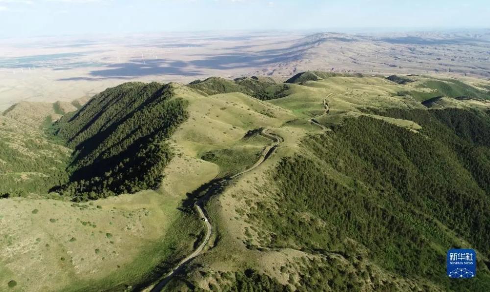这是6月23日拍摄的罗山风光(无人机照片)。位于宁夏吴忠市境内的罗山是宁夏中部重要的生态屏障。夏日时节,罗山林木茂盛,生机勃勃。 新华社记者 王鹏 摄