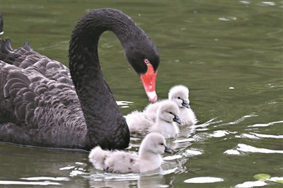 广州日报讯(全媒体记者轩慧通讯员李木生摄影报道)昨日,深圳野生动物园天鹅湖里,3只黑天鹅幼雏在“家长”的陪同下正式走出巢穴下水活动。这是进入夏季以来该园迎来的第一批天鹅宝宝。