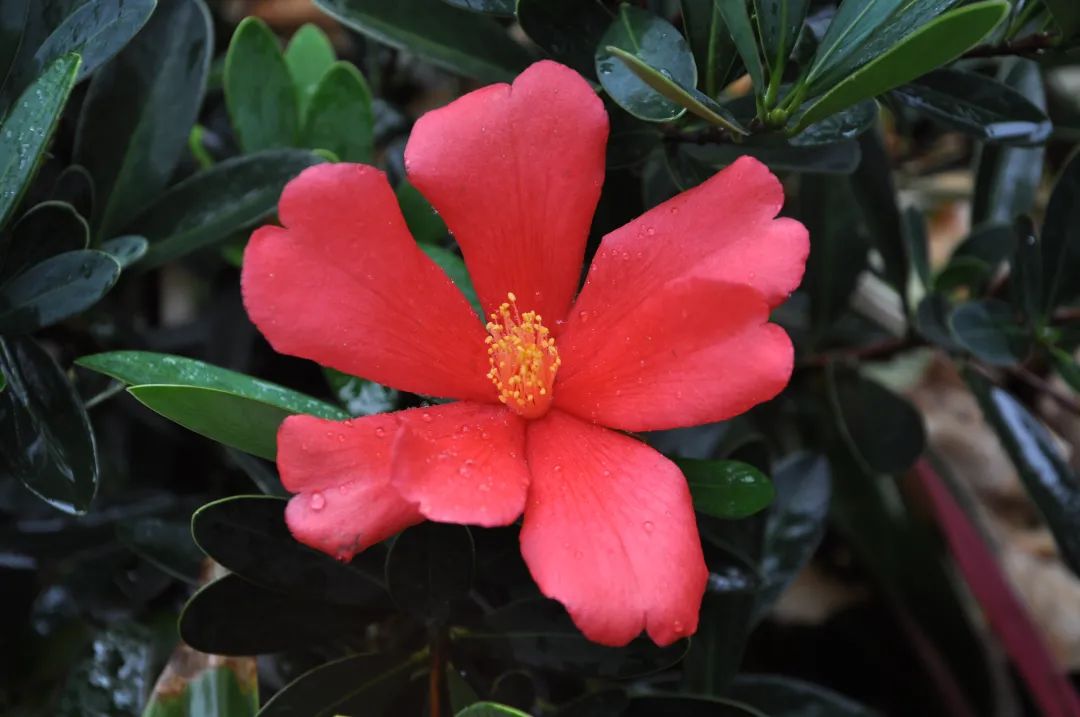 国家一级重点保护野生植物,特产广东阳春。杜鹃红山茶一年四季均开花,被誉为“植物界的熊猫”。野外调查发现只有千余株。华南植物园任海研究员与广东鹅凰嶂自然保护区合作,在每株植物上剪下3根小枝条进行嫁接,建立了遗传多样性资源圃,成功实现其迁地保护,全覆盖保护了该物种的遗传多样性。