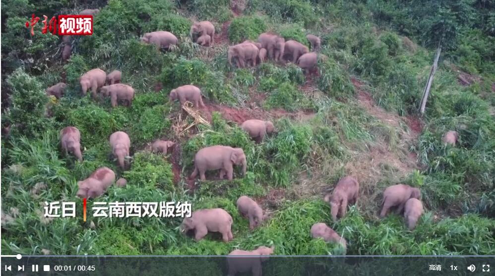 云南西双版纳:30余头野生亚洲象集体外出觅食