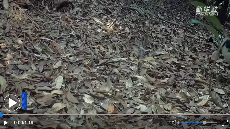 近日,云南省普洱市景东县中国科学院哀牢山生态站布置的野外红外相机拍到了白腹锦鸡在林间悠闲觅食的珍贵视频。