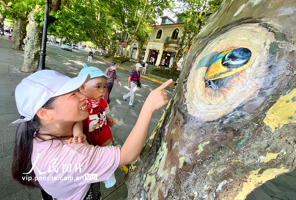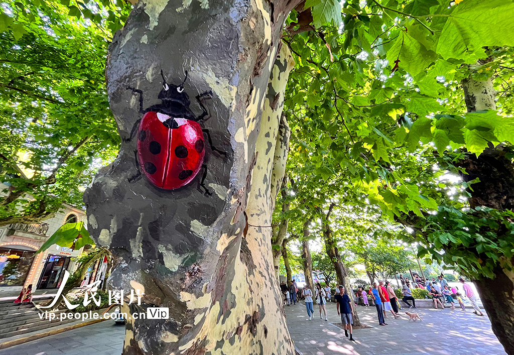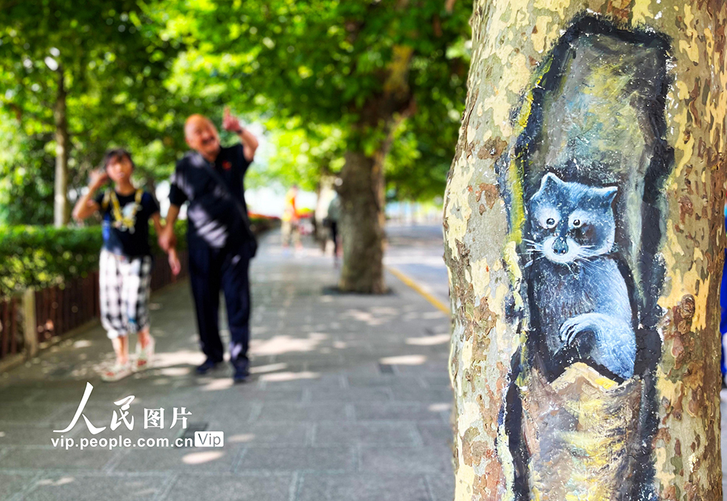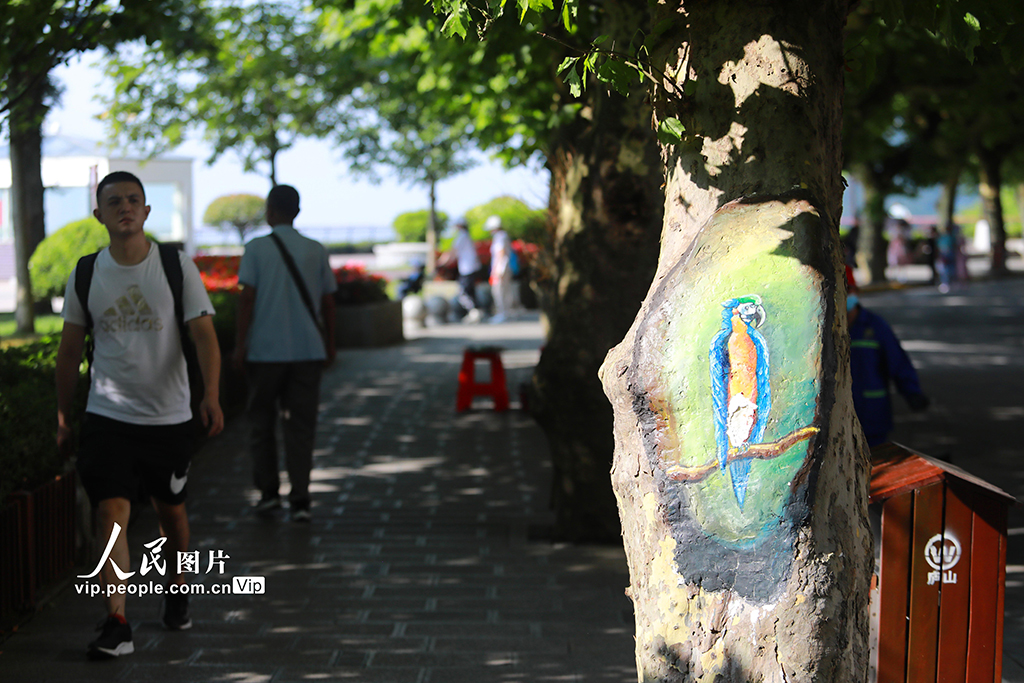 据庐山景区市政管理所工作人员介绍,一些行道树存在虫蛀、腐烂等情况,针对此现象,工人对树洞位置进行清腐、打药、填充,再邀请专业墙绘师用防水耐晒的丙烯颜料作画,树洞得到完美修复。此举不但对树木起到了防护作用,还呈现出了高颜值的艺术作品,扮靓了景区,受到游客的追捧。张驰摄(人民图片网)