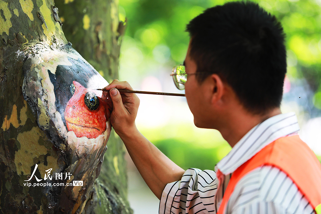 江西九江:树木养护新举措 3D动物“跃然树上”