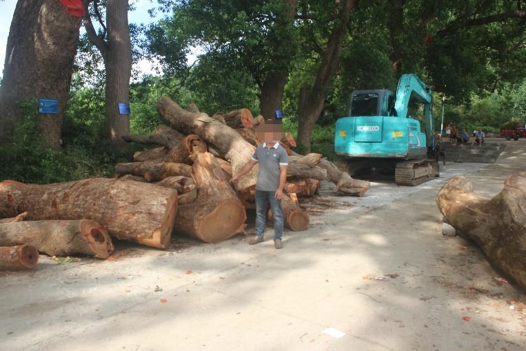 “到达现场后,我们走访了解了基本的情况,还对嫌疑人聘请的司机、挖掘机还有运输车辆进行了取证;同时,聘请第三方工程师,对被砍伐的樟木进行检验鉴定,通过鉴定结果,认定砍伐古树的这一行为已经构成犯罪。”富川瑶族自治县公安局森林公安局副局长唐明宇介绍。