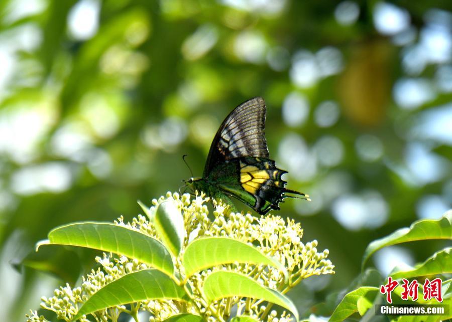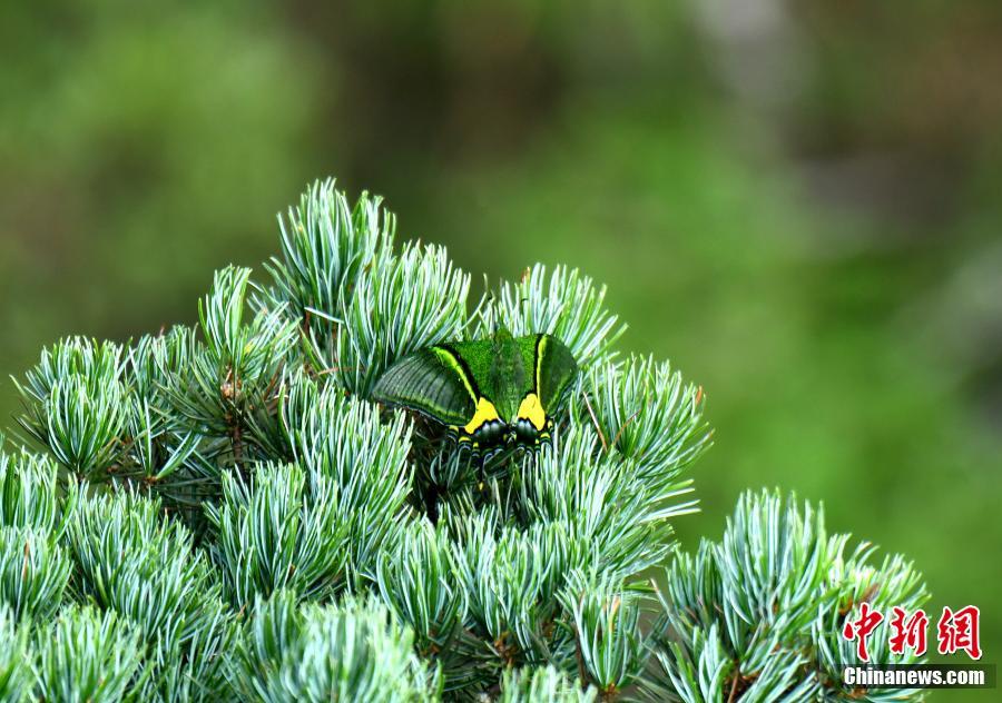 据广东省林业局9月8日消息,广东南岭国家级自然保护区近日拍摄到国家一级保护野生动物金斑喙凤蝶的珍贵视频。经确认,这是目前为止该保护区首次记录到金斑喙凤蝶的影像,十分罕见。图为广东南岭国家级自然保护区拍摄到的金斑喙凤蝶。广东省林业局 供图