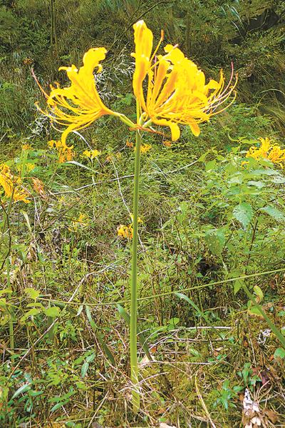 石蒜,因为花芽和叶芽分化所需要的环境温度不一样,所以才见花不见叶、见叶不见花。石蒜花的美艳不亚于西方舶来的郁金香,石蒜家族中更有白色石蒜等品种,多色系石蒜是大自然的杰作,在园林中更受欢迎。(王学胜 龙琳 文/摄)