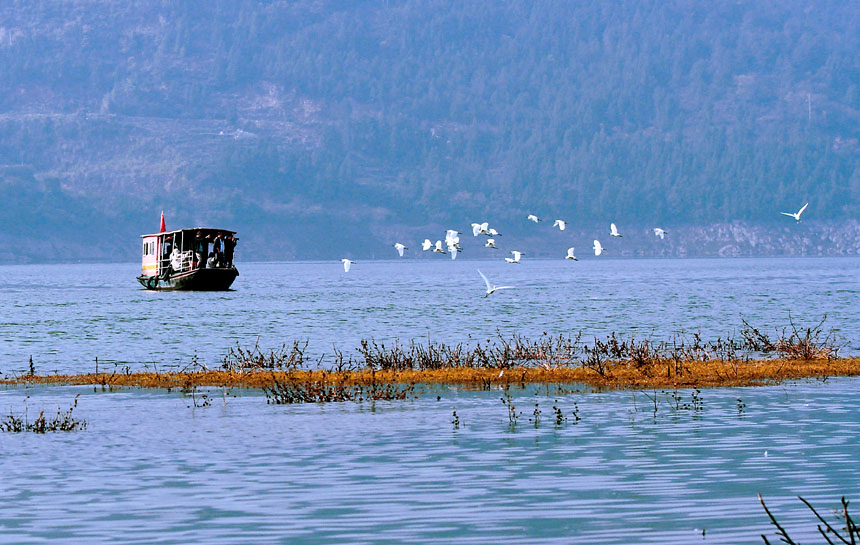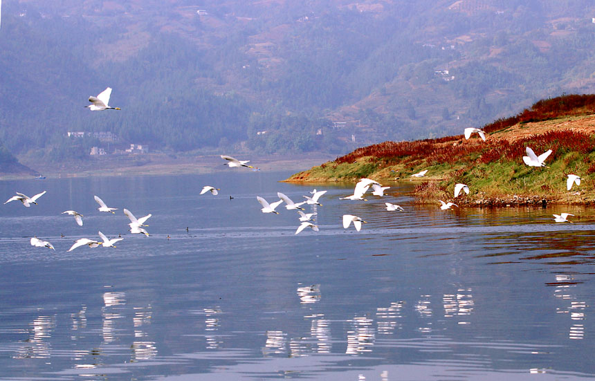 人民网重庆11月9日电 (陈琦、常碧罗)“环境好了,鸟儿都重新飞回来了。”近日,在重庆市巫山县大昌湖国家湿地公园里,成千上万的白鹭、鸬鹚、白骨顶鸡、凤头鹈和各种野鸭等国家级保护鸟类陆续飞来,在美丽的湖滨栖息越冬,吸引了无数摄影爱好者和爱鸟人士观鸟摄影。