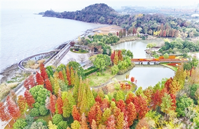 近年来,江苏省南通市坚持绿色发展理念,持续推进长江岸线整治,区域生态环境质量持续改善。图为南通市狼山国家森林公园。