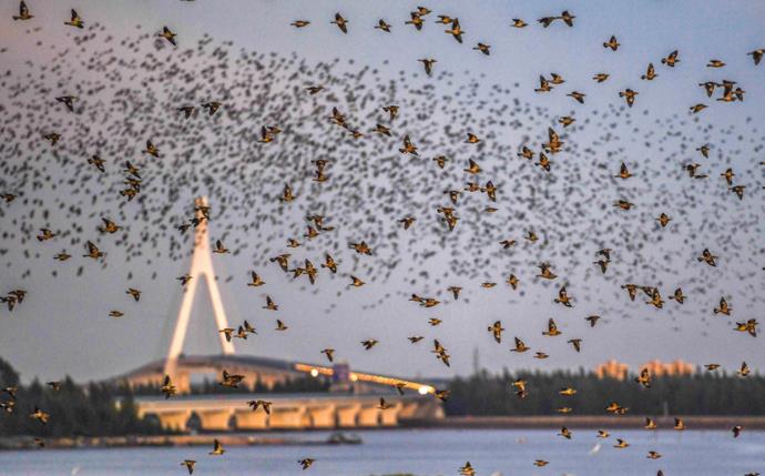 近年来,海口市大力开展红树林生态保护修复,海南东寨港国家级自然保护区红树林面积逐年扩大,生物多样性明显增多,物种丰富度明显增强,生物生态链明显稳固,鸟类记录从180种增加到200余种,良好的生态环境为候鸟迁徙及越冬营造了优越的栖息地。石中华摄(人民图片网)