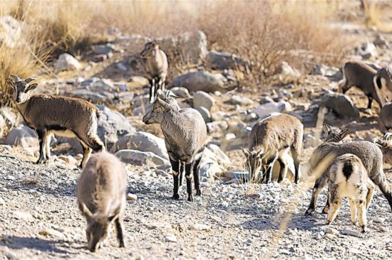12月15日,贺兰山国家森林公园内,国家二级保护动物岩羊在山间悠闲自在地漫步。贺兰山国家森林公园生态科普员宁晋告诉记者,近年来,宁夏持续推进贺兰山国家级自然保护区生态环境综合整治,为岩羊、马鹿、石鸡等野生动物提供了食物保障和天然庇护。目前,保护区内岩羊总量达到5万多只,是世界岩羊分布密度最高的地区之一。