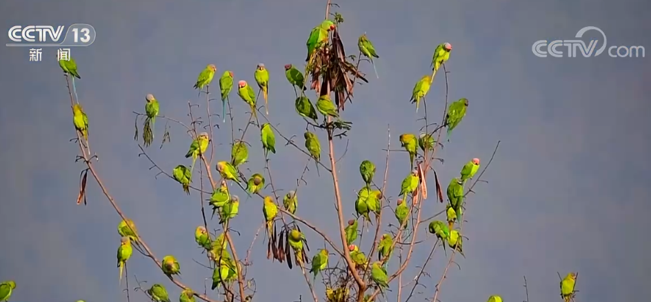 近日,记者在云南瑞丽市观测、拍摄到包括花头鹦鹉在内的多种鹦鹉。鸟类专家表示,据此影像能够确定群飞的花头鹦鹉数量超过100只,刷新了该物种在我国的观测纪录。