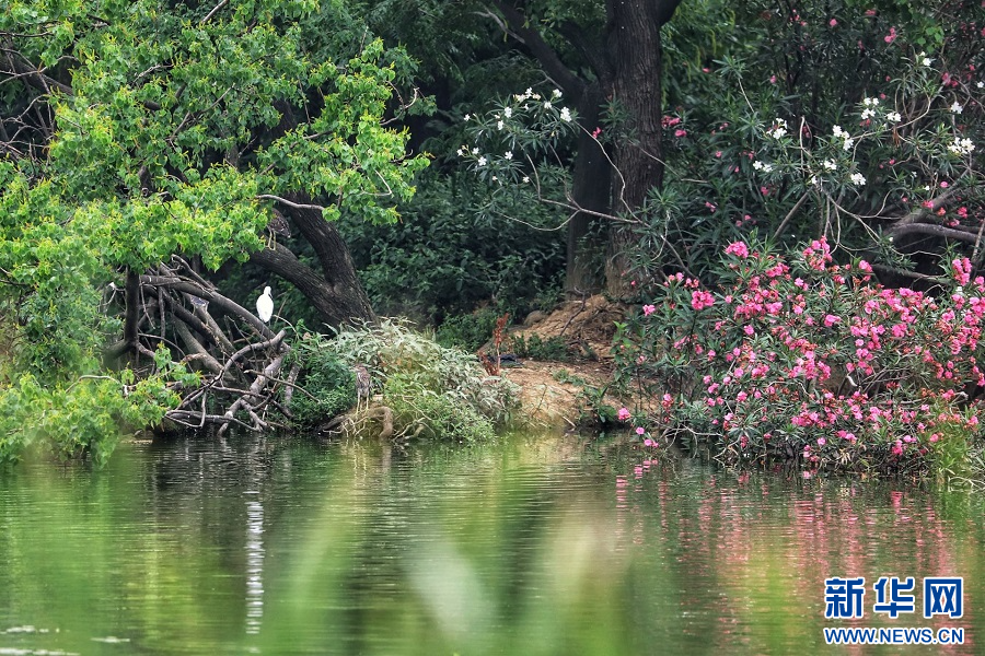 新华网南昌6月26日电(王晓震 舒雯)仲夏时节,南昌高新区艾溪湖美景正盛。在艾溪湖湿地公园东南角一处密林掩映的岛上,不时传出阵阵鸟鸣。千余只白鹭、夜鹭、池鹭等鹭鸟或枝头休憩,或掠过林间,构成了一幅生机盎然的夏日美景。