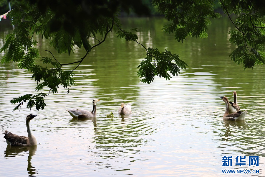 艾溪湖湿地公园还有很多“元老级”的候鸟。最早“落户”公园的黑天鹅已是“八代同堂”的大家族了。今年4至5月,已有50余只蓑羽鹤、疣鼻天鹅、加拿大黑雁、灰雁、鸿雁等鸟宝宝在艾溪湖自然孵化。
